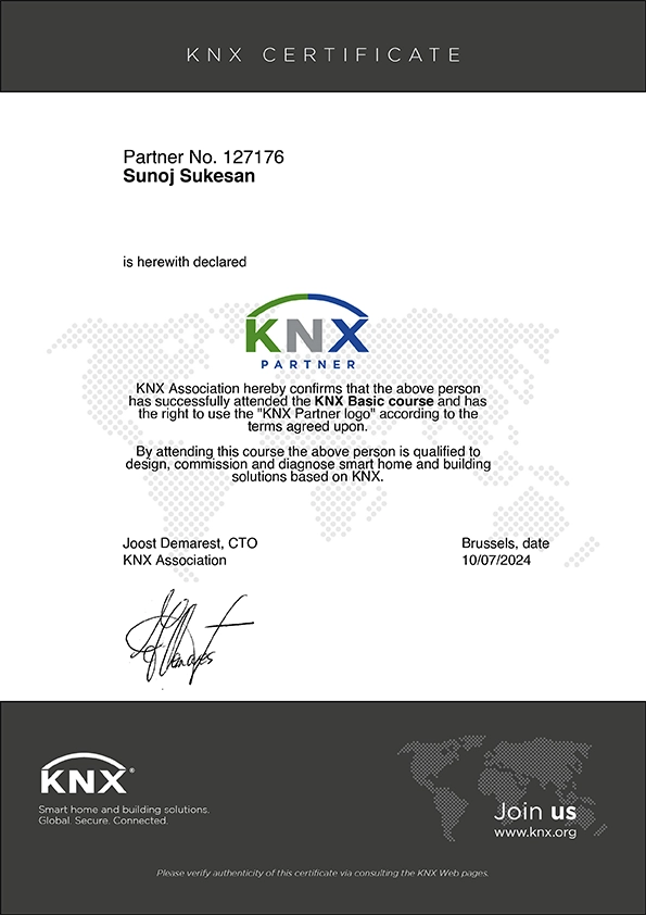 Transform your home, office, hotel, or building with advanced KNX automation solutions that put control in your hands. Manage lighting, climate, appliances, and security through a smartphone app, touch panel, or voice commands. Enjoy greater comfort, energy efficiency, and convenience with smart technology designed to adapt to your lifestyle and business needs.